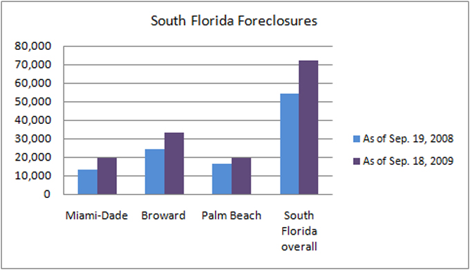 The number of foreclosures in South Florida this week dropped to 1,926 from 2,094 in the same week last year, according to data from Condo Vultures Realty. Year-to-date, the number of foreclosures increased to 72,405 from 54,124 at the same point last year. The graph below shows foreclosure activity in South Florida’s three counties. TRD