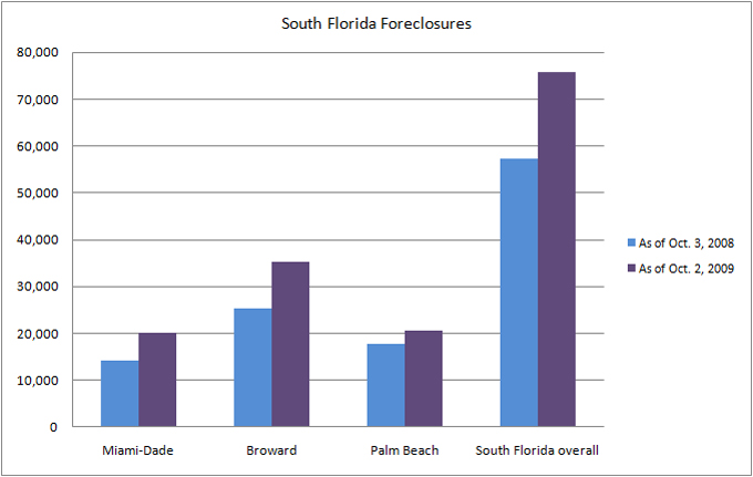 The number of foreclosures in South Florida this week dropped to 1,720 from 1,821 in the same week last year, according to data from Condo Vultures Realty. Year-to-date, the number of foreclosures increased to 75,766 from 57,280 at the same point last year. The graph below shows foreclosure activity in South Florida’s three counties. TRD