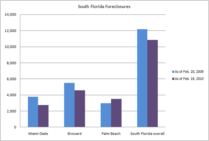 The number of foreclosures in South Florida this week dropped to 1,404 from 1,649 in the same week last year, according to data from Condo Vultures Realty. Year-to-date, the number of foreclosures dropped to 10,832 from 12,194 at the same point last year. The graph below shows foreclosure activity in South Florida’s three counties. TRD